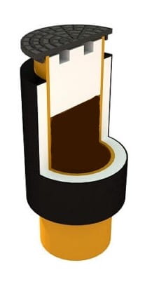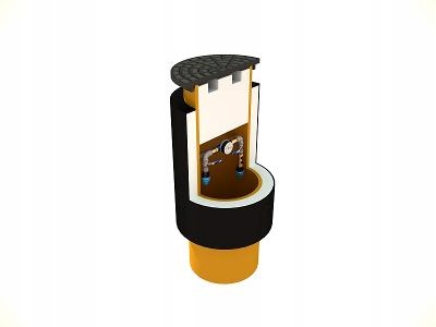 Nasza studzienka wodomierzowa ocieplona jest polistyrenem EPS-100 o grubości 50 mm i zabezpieczona jest folią polietylenową. Studnia wodomierzowa naszej produkcji dedykowana jest do montażu na terenach charakteryzujących się zarówno niskim jak i wysokim poziomem wód gruntowych. Konstrukcja studni wodomierzowej charakteryzuje się innowacyjną budową, studnia nie posiada dna. Umożliwia to efektywne wykorzystanie geotermalnych właściwości Ziemi. Wykorzystywana energia geotermalna zabezpiecza zawartość studzienki przed zamarznięciem. Dodatkowo korpus studni wyposażony jest w polistyrenową otulinę. W celu utrzymania dodatniej temperatury wewnątrz studni zastosowano także dodatkowy korek styropianowy. Wodomierz montowany jest około 30 cm poniżej krawędzi studni, głębokość ta gwarantuje utrzymanie pełnej ochrony termicznej przy temperaturze otoczenia sięgającej - 40 º Celsiusa, jednocześnie gwarantuje bezproblemowy odczyt jego wskazań z poziomu gruntu bez konieczności wchodzenia do studni. Zastosowanie w studni pokrywy z żeliwa o klasie wytrzymałości A15 pozwala na montaż na chodnikach oraz podjazdach dla samochodów osobowych.