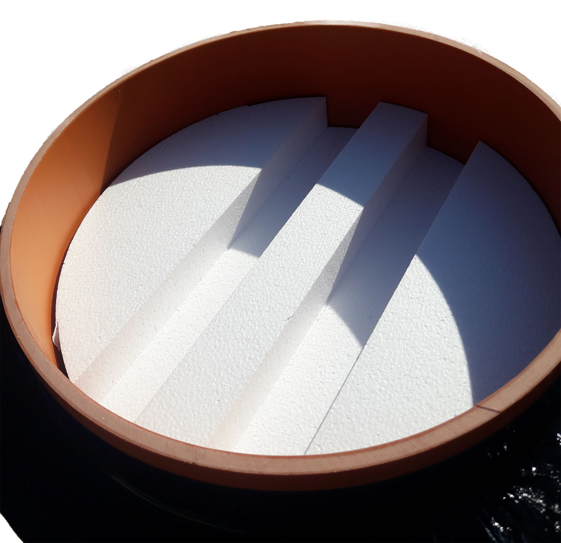 - otulina ze styropianu EPS 100 grubości 50 mm i wysokości 1000 mm a nie jak u innych Sprzedawców 800 mm. Dłuższa otulina = lepsza izolacja termiczna studzienki