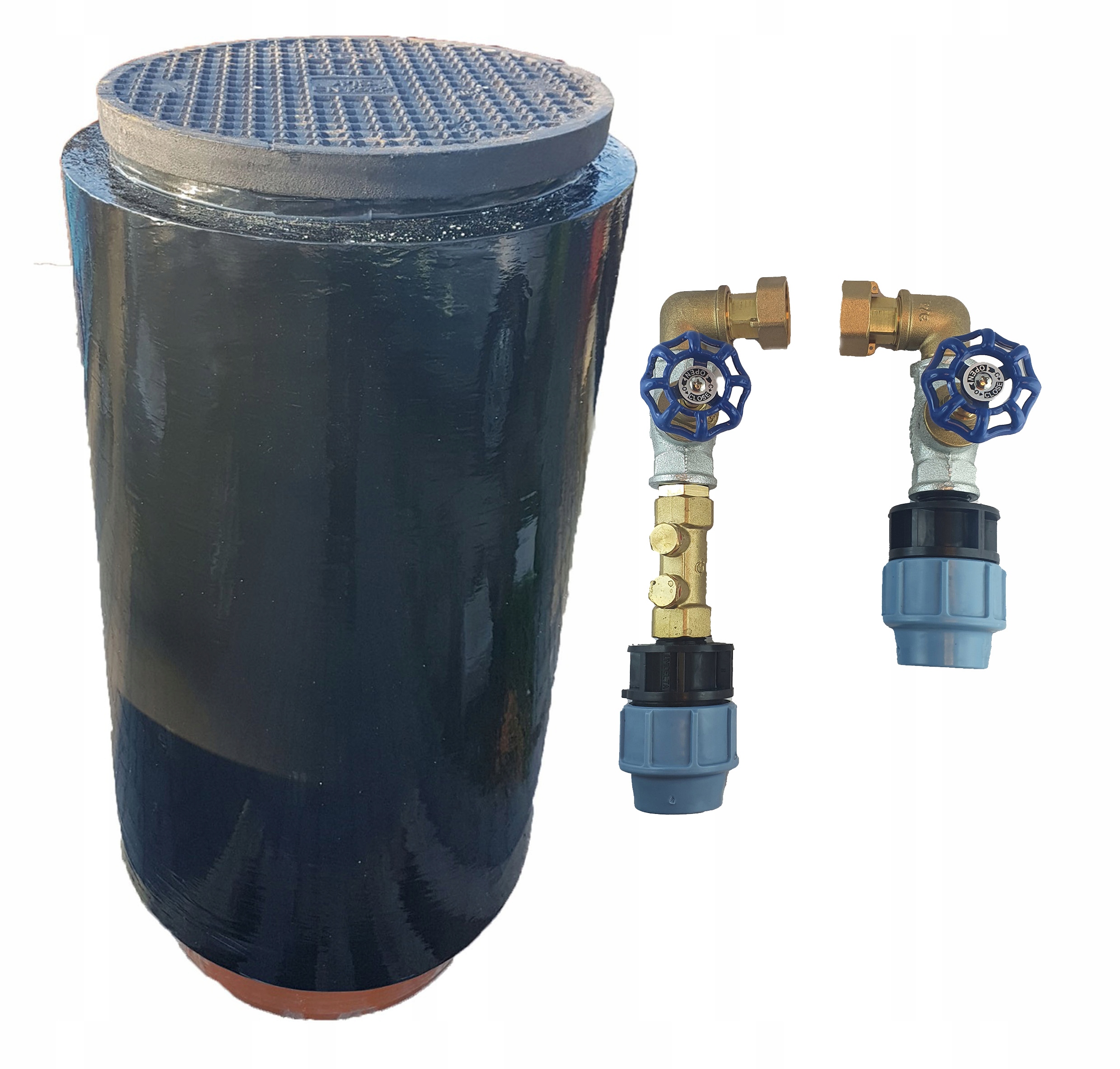 Studzienka wodomierzowa fi 500 mm i wysokość 1200 mm ocieplona z pokrywą żeliwną o klasie nacisku A15 (1.5 tony) z zestawem przyłączeniowym do wodomierza.