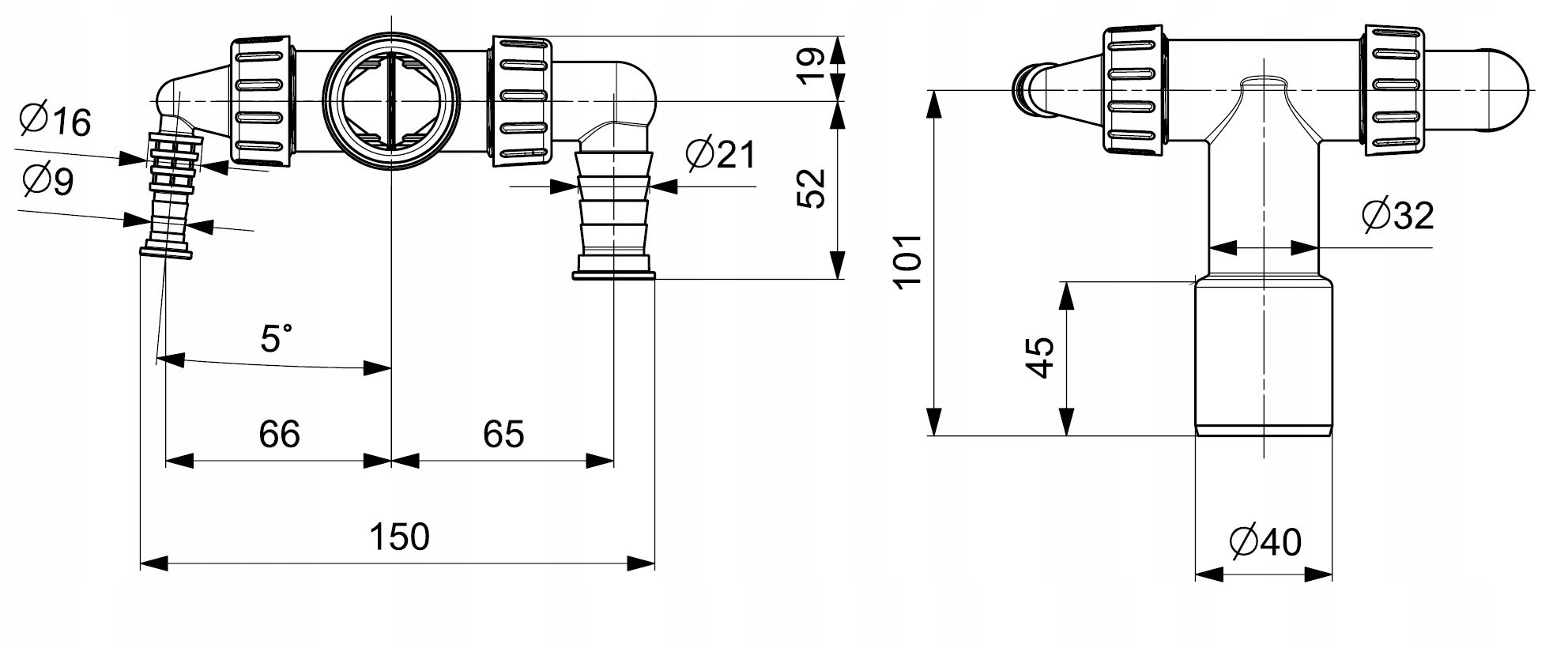 Syfon podwójny pralki i suszarki 32/40 biały